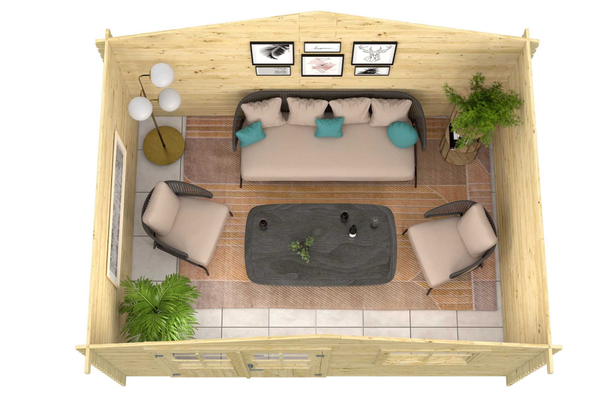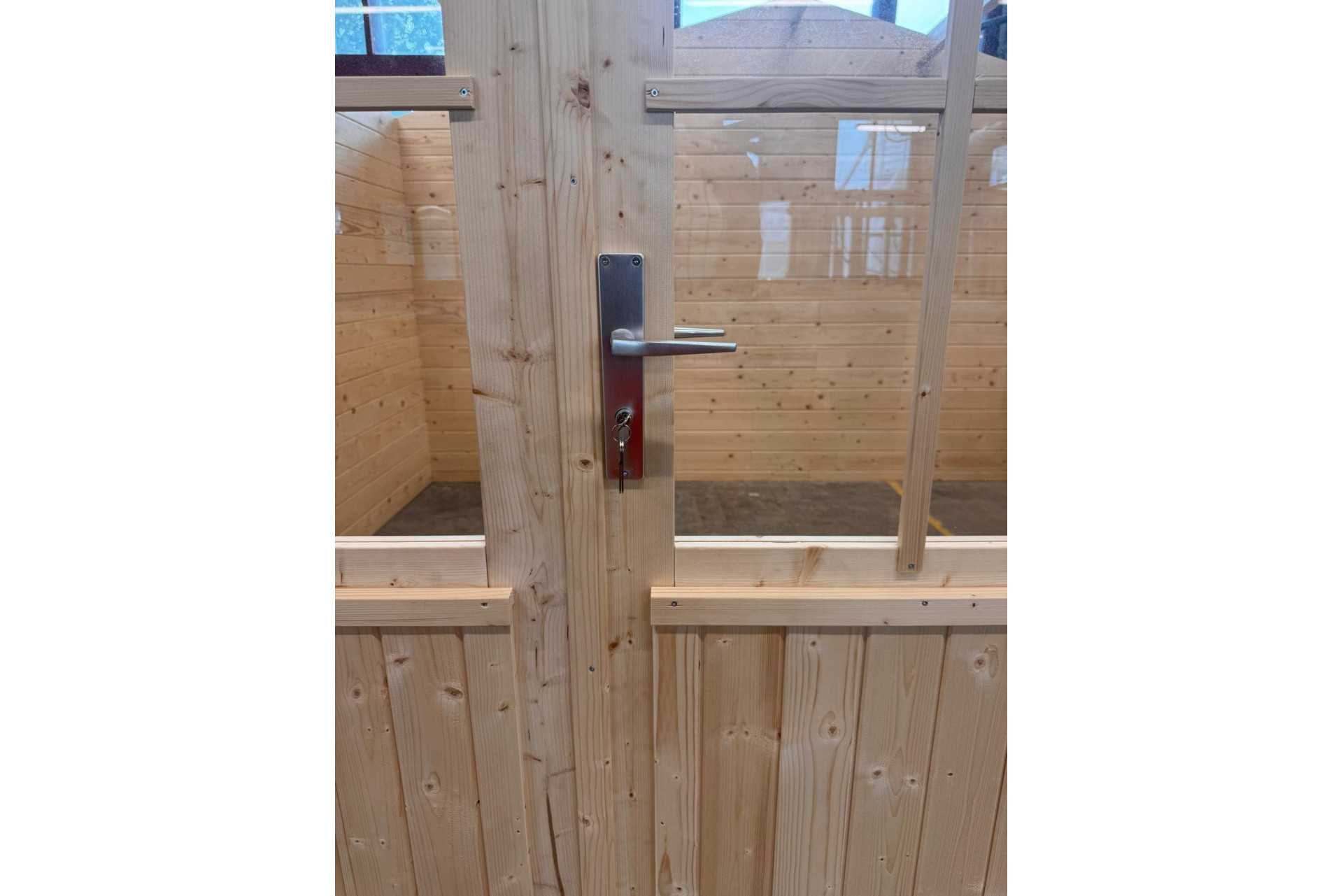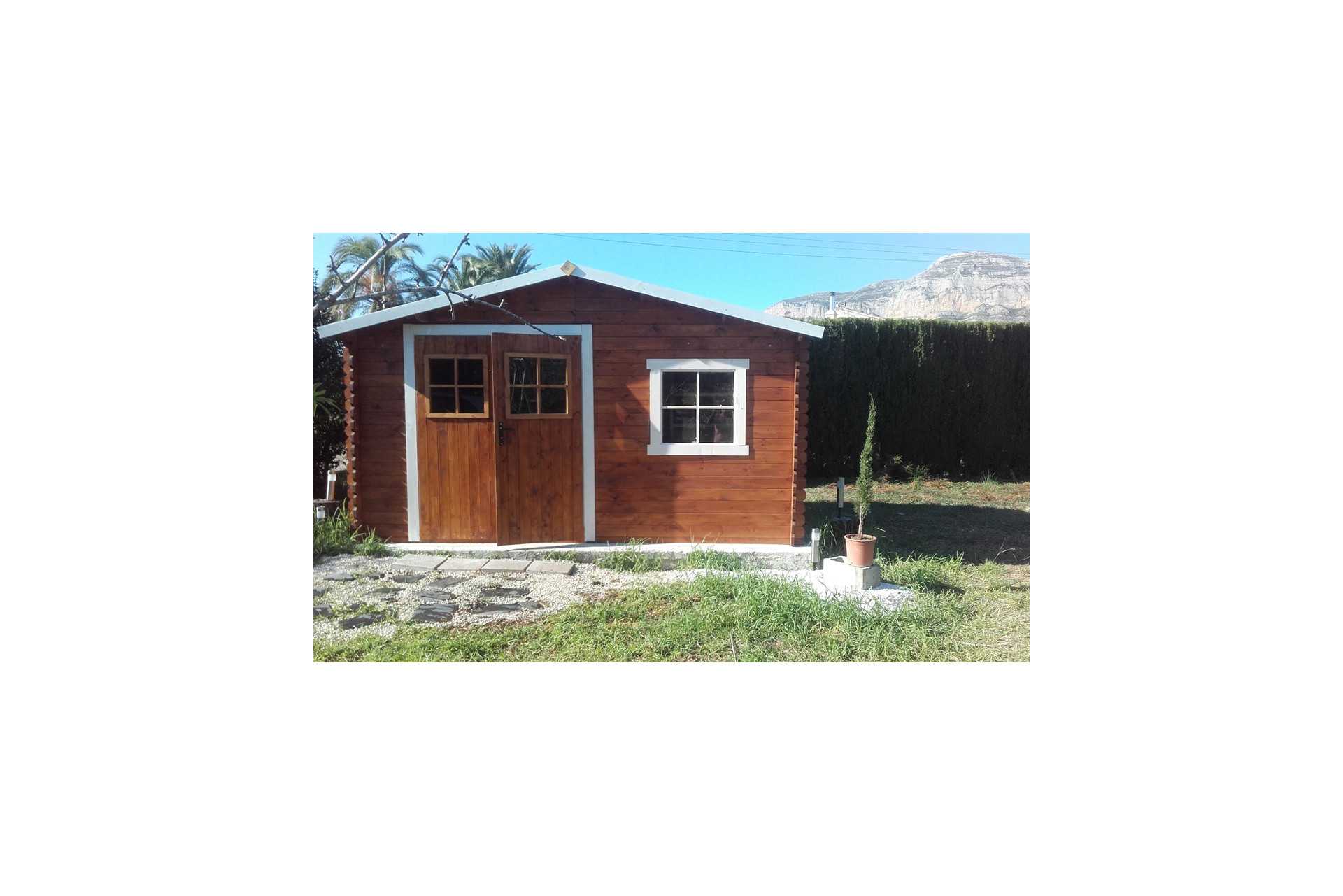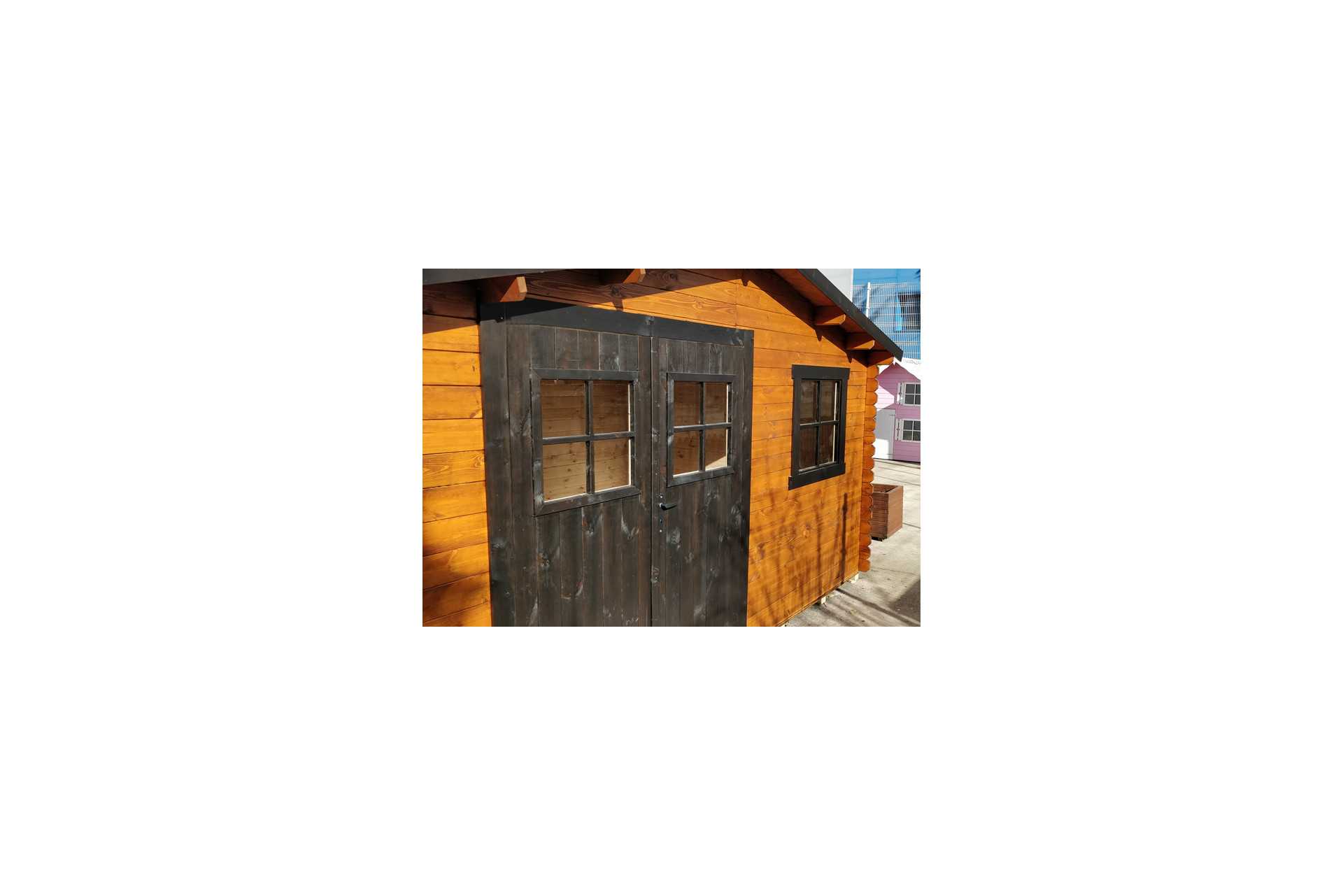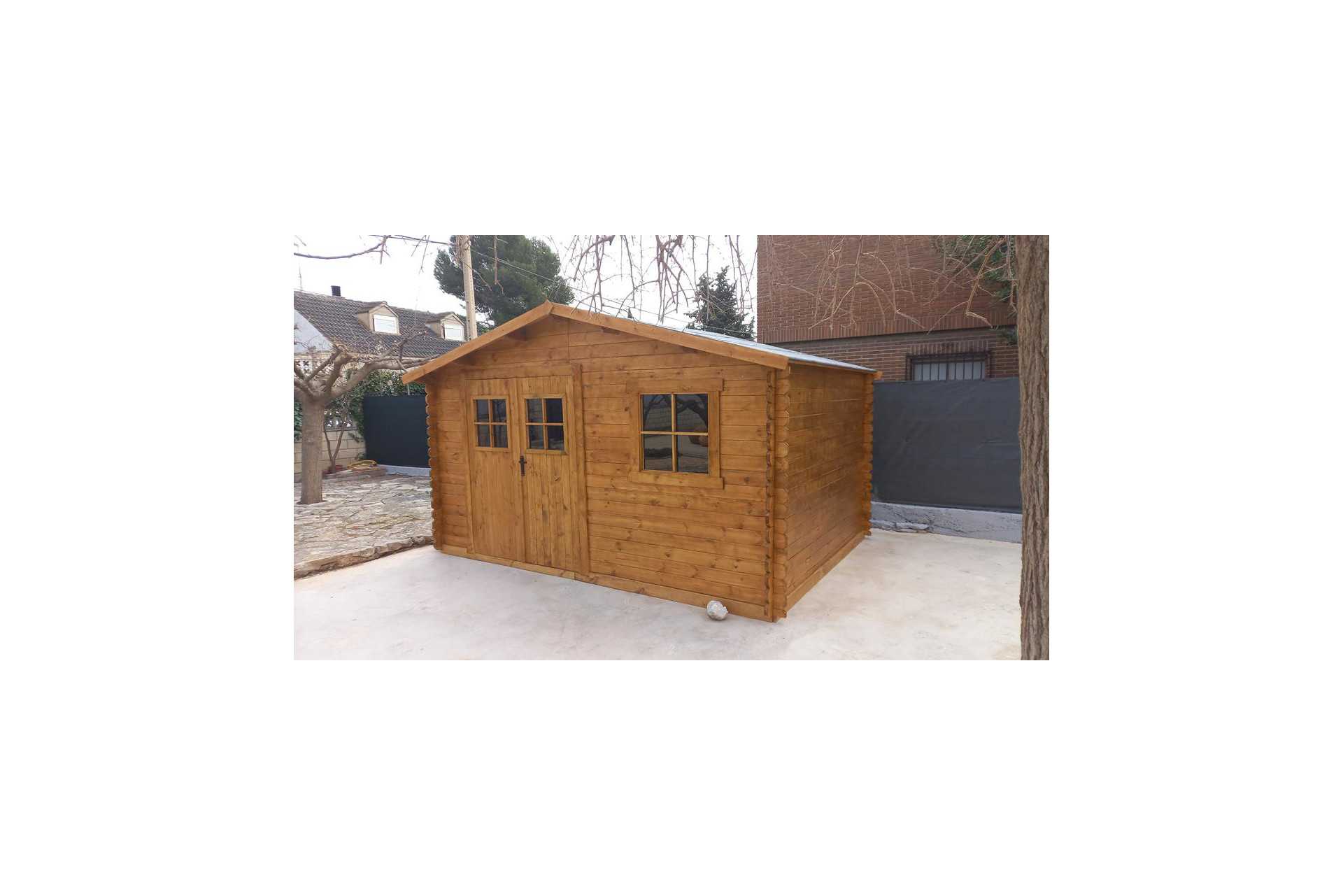 Fabricada en abeto nórdico de máxima calidad de medidas 400x300 cm con puerta doble y ventana oscilobatiente frontal.